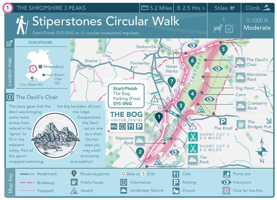 Starting at the base of the hill, this 5.2 mile circular walk will take approximately 2.5 hours to complete. You’ll find incredible viewpoints along the whole route with some of the best views in the county.