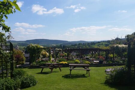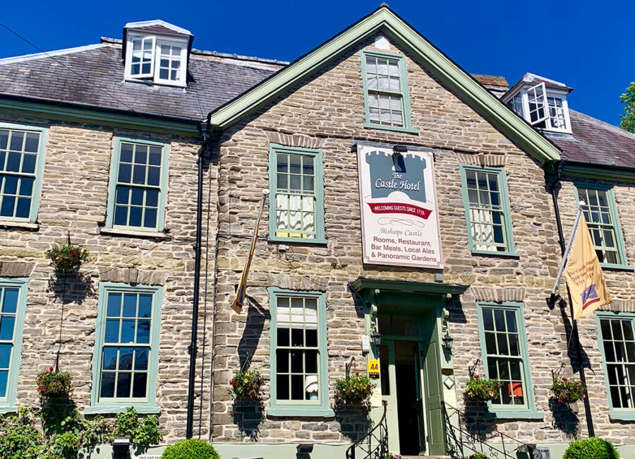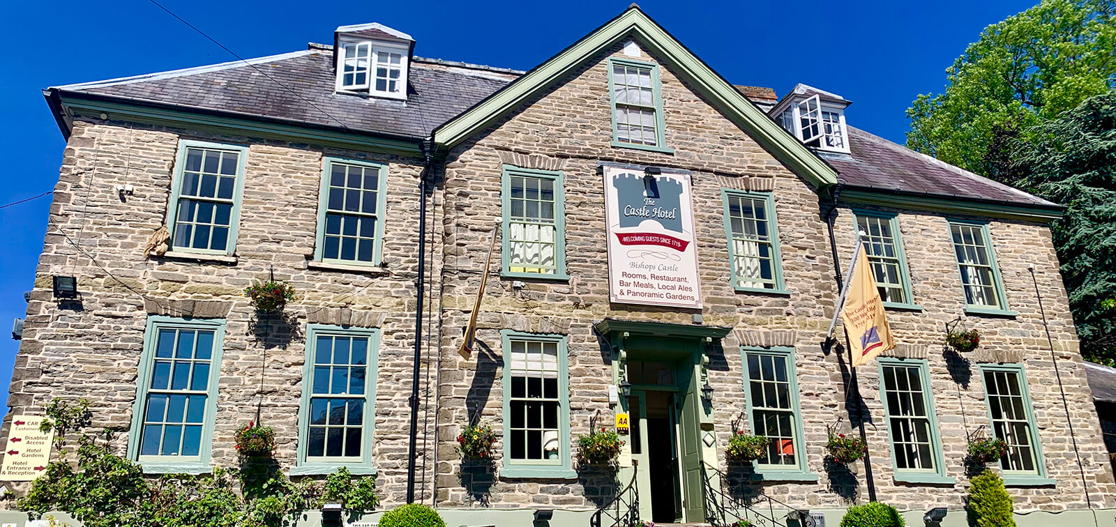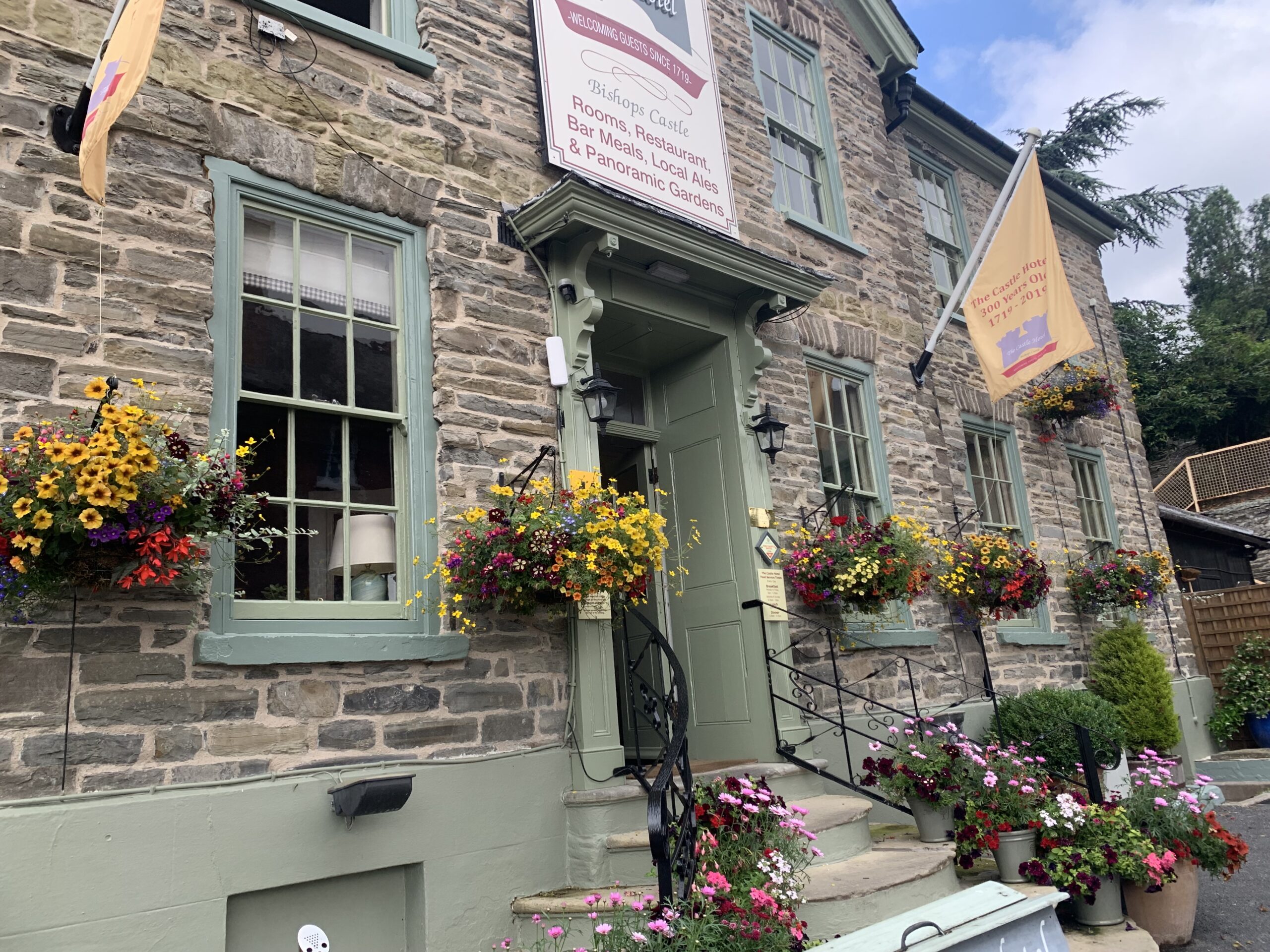 Situated in a quiet little square at the top of Bishops Castle (so no passing traffic) with fantastic panoramic views and hill top gardens. The Castle Hotel has is Dog Friendly, Walker Friendly and Cyclist Friendly.
