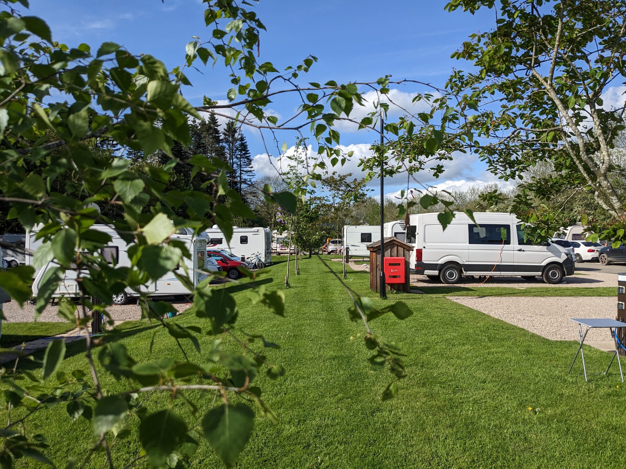 At Foxtail Holiday Park, you will find our  Touring Caravan and Motorhome Park, the pitches are spaciously placed, all six metres wide, with a choice of length of up to 10 metres or over 10 metres. All of the pitches feature a hardstanding base, perfect for any weather, and come with electric hook-up, plus fresh water and grey waste drainage. Your stay also includes free superfast WiFi throughout the campsite and 24/7 access to the heated indoor toilet and shower facilities.