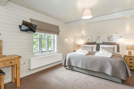 Nestling in secluded woodland, each super-stylish lodge boasts a luxurious, contemporary interior that unites exquisite traditional craftsmanship with modern technology to create an indulgent home-from-home completed by spacious tree-lined decking hosting hot tubs. With Henlle Hall’s fabulous views, beautifully preserved walled garden, and nearby golf at Henlle Park Golf Club, along with the nearby Lion Quays restaurant Country Club and Spa, everything is in place for the perfect, indulgent lodge escape.