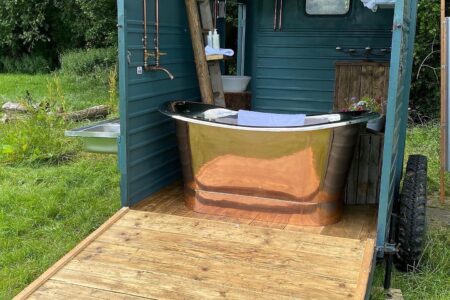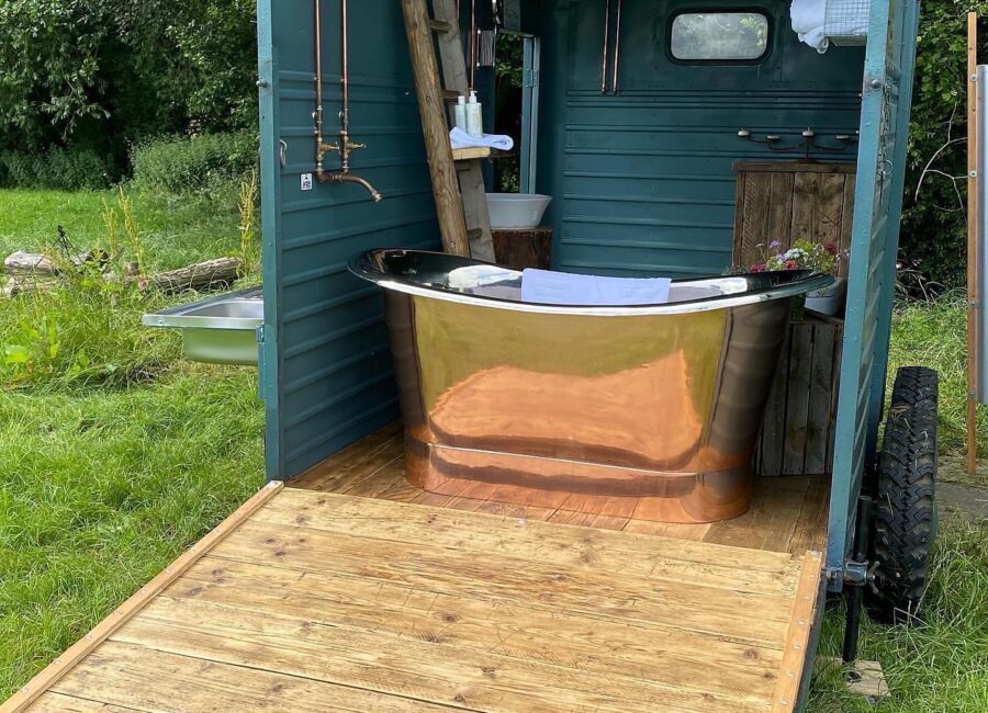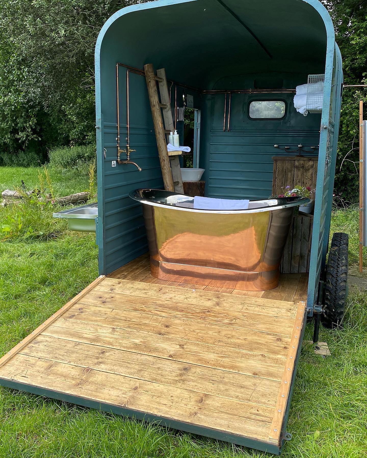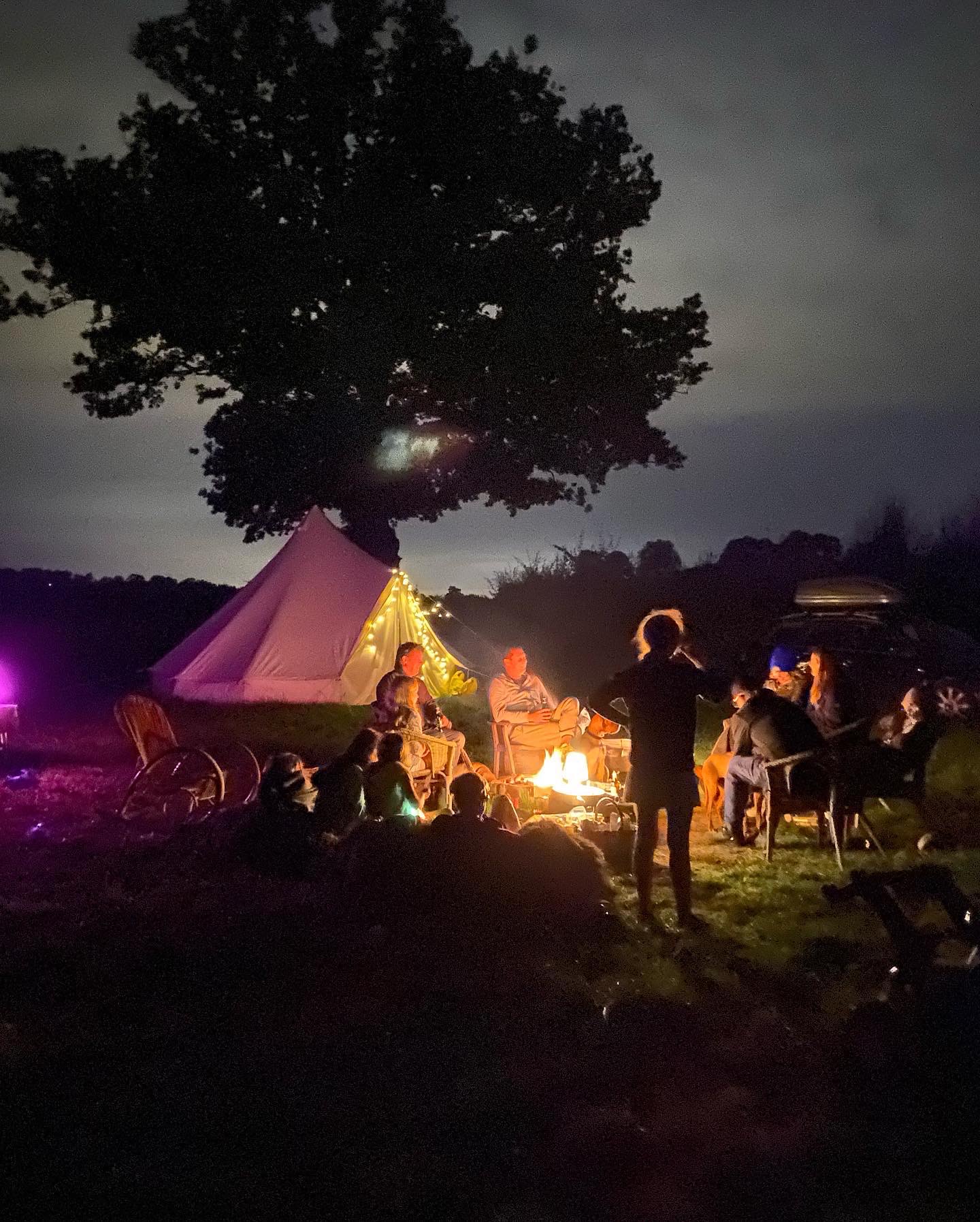 Whether its a family camping trip, re-union, celebration or travelling solo, wildconTENTment can accommodate all of those needs. We are essentially offering a large(11 acres) camping  field offering only 6 pitches for a paired back close to nature experience where you can get away from it all. For those who want a little extra luxury we have 2 Bell tents for hire including luxury linens and duvets. Private bathrooms you can hire in the form of Beryl bathrooms (converted rice horse trailers) which come complete with hot water, flushing loo, copper roll top bath, luxury toiletries and outdoor sink and undercover outdoor area. If a private bathroom is a little OTT for you, pitches come with compost loo, camp fire and running water. Meal boxes can also be hired. We are dog friendly and allow camp fires (Kadai firebowls can also be hired for those wishing to cook up a storm). There is a small shop selling all the essentials a 5 min walk from the site and 3 pubs are within walking distance