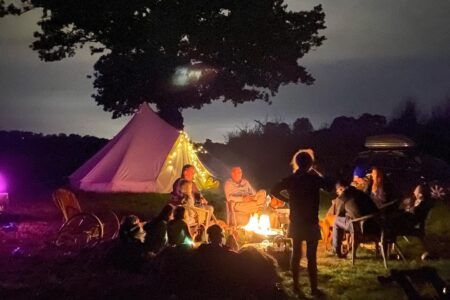 An eco-friendly campsite offering 10 large pitches with bell-tents and luxurious and quirky en-suite bathrooms available right on the border where England meets Wales.