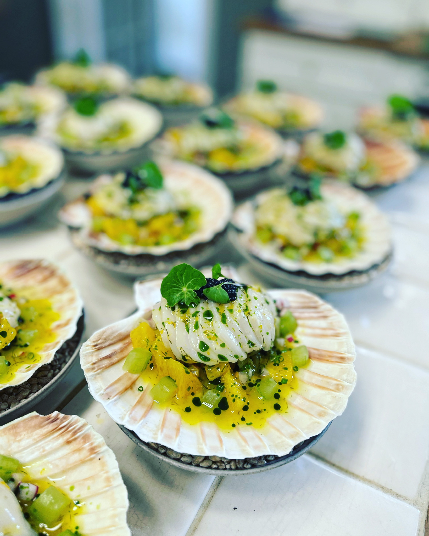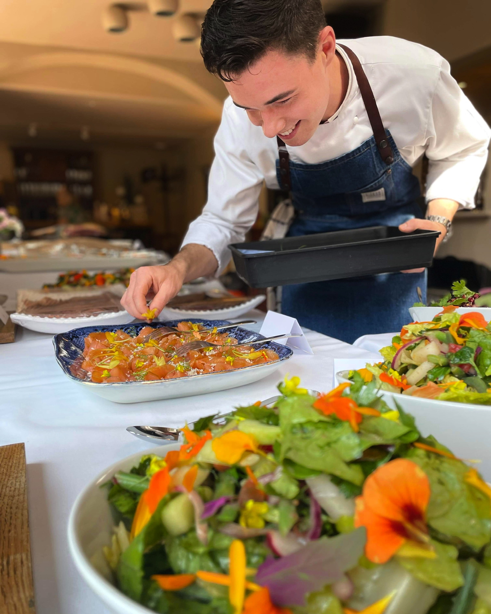To enjoy Dinham Weir House at its absolute best, why not hire our onsite chef Harry Bullock of Evatt & Bullock Co. Due to his popularity with our guests over the last couple of years, Harry’s professional kitchen is now based in our newly converted garage. So now, when you stay at the magical Dinham Weir House, you have the privilege of Harry’s talents’ onsite. You can enjoy his delicious food ranging from a one pot welcome supper to the full luxury private dining experience with Harry and his incredible team. Not only is he a remarkable chef delivering an exquisite dining experience, what really makes him really special, is his friendly and reliable nature. Together we hope to raise the profile yet again of Ludlow as a food destination. We believe Harry is going to bring Michelin star standard food and service back to this brilliant historic market town. Harry and his team work hard to support local suppliers and producers, making this a fulfilling venture for all. He’s already down for multiple celebrations with us this year, and we believe with plenty more to come.