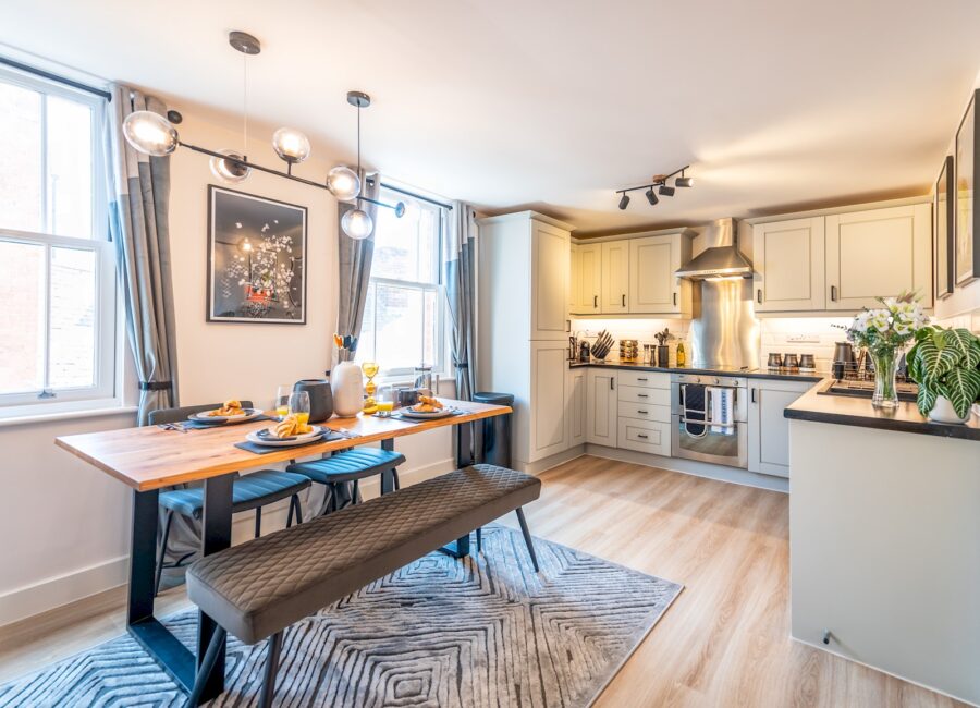 On the ground floor, you can unwind in our generously-sized lounge area. Adjacently, the fully-equipped kitchen and dining space with patio doors out to a private enclosed garden.