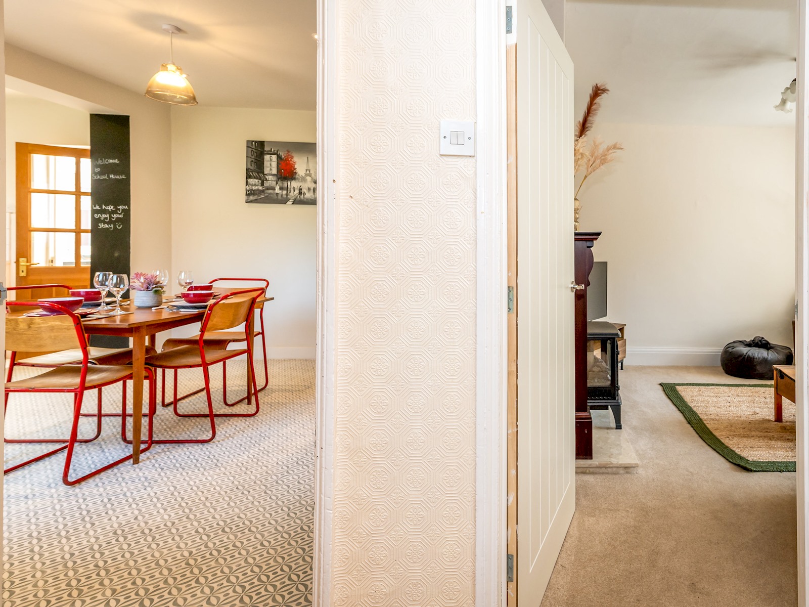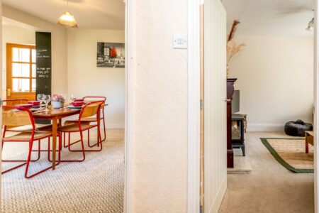 The house is a semi-detached cottage which has recently been refurbished and some of the lovely furnishings are in-keeping with the old school building. Downstairs has a comfortable lounge room for relaxing with Samsung Smart TV (with Freeview) and electric fire.
