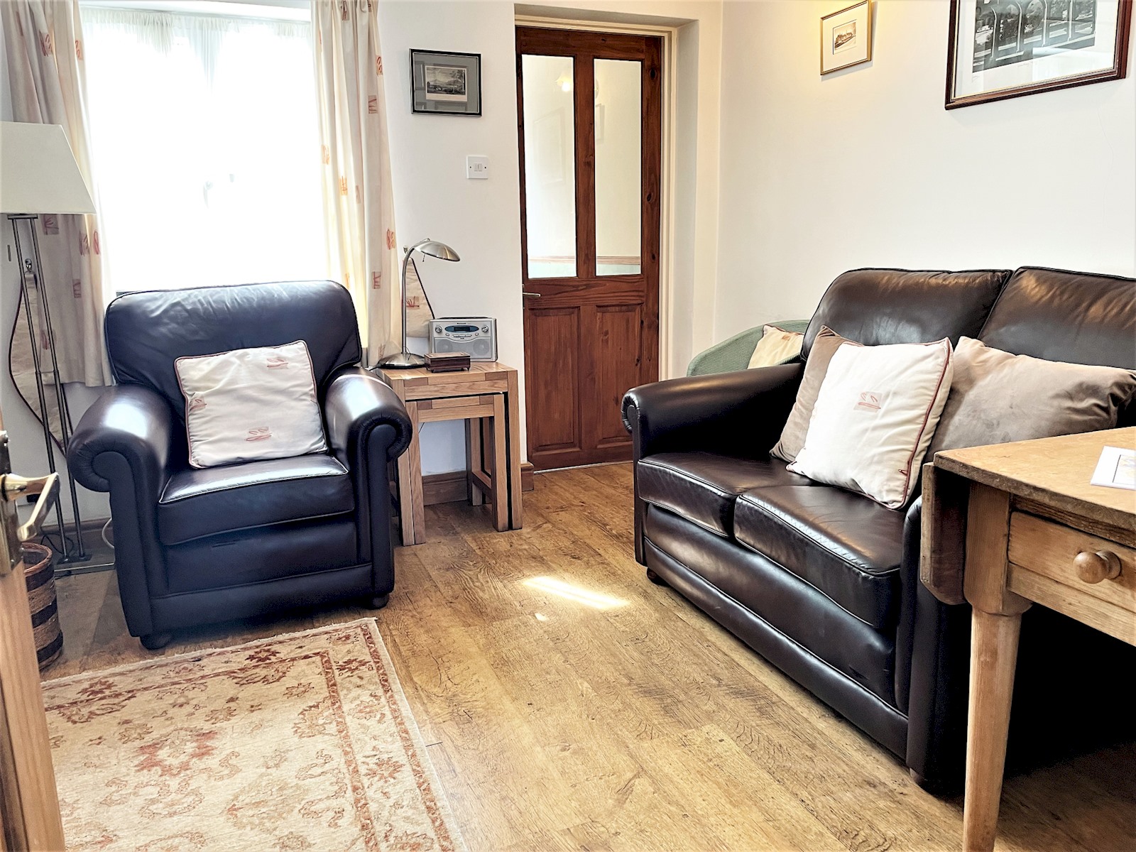 Downstairs you come into the cottage via the open-plan conservatory/kitchen. This is a great space to sit, relax and take in the views. Through to the lounge for the colder months, we have a log burner, which you are welcome to use.