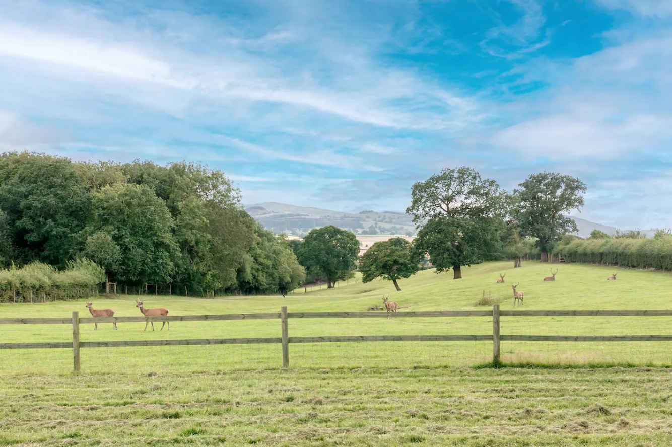 Outside, immerse yourself in the beauty of the Shropshire hills and the lush surrounding fields, which provide a haven for deer to graze peacefully. A mere 2-minute drive will lead you to the top of Lyth Hill, offering awe-inspiring panoramic views across the breath-taking Shropshire landscape.
