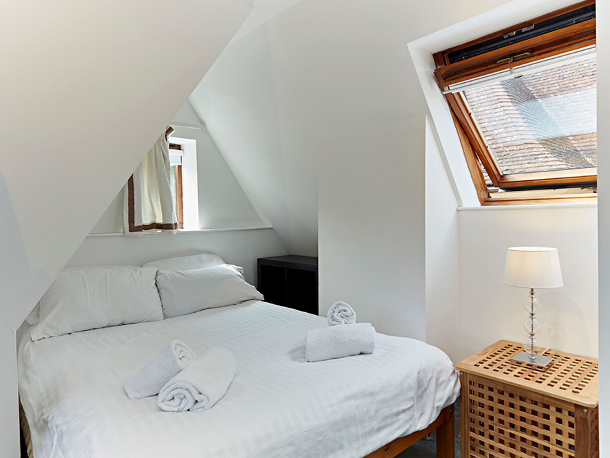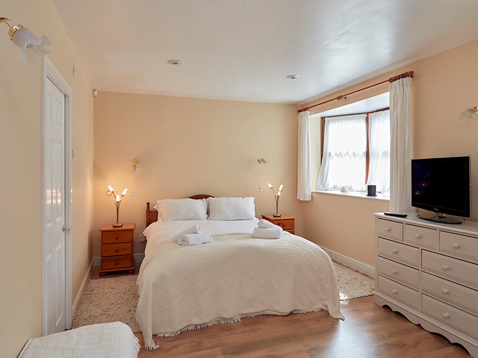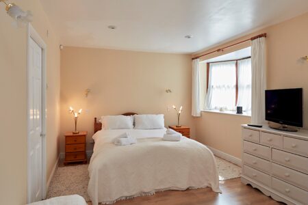 On the second floor, there are two double bedrooms, both with king-size beds. The spacious master bedroom benefits from an ensuite bathroom with bath and separate shower. There is also a second bedroom with king-size bed, both rooms have plenty of storage.