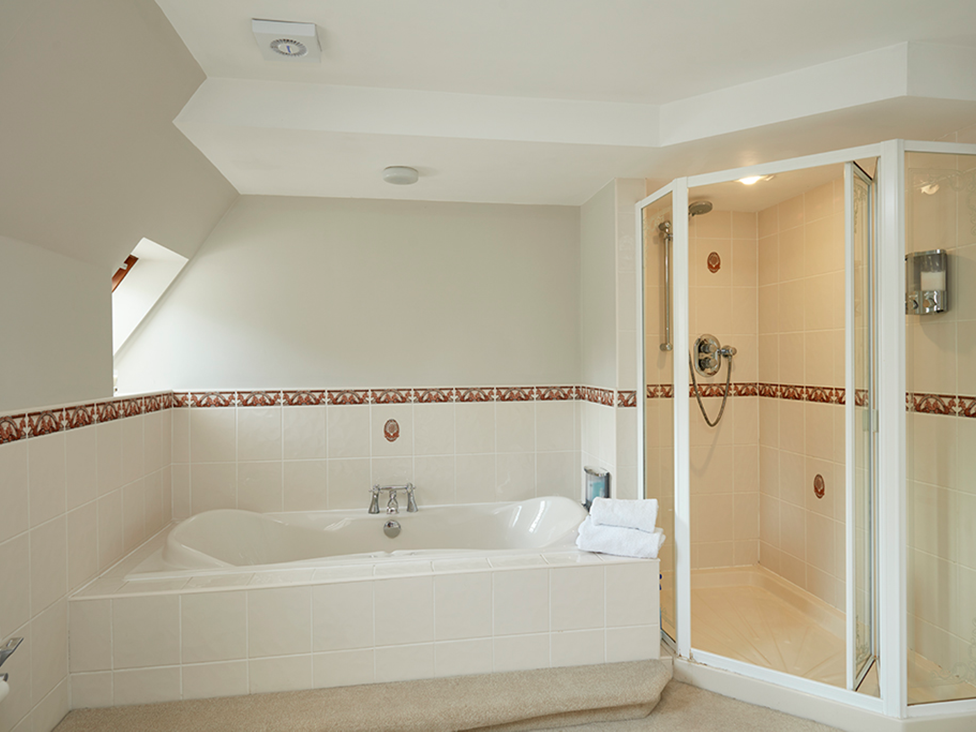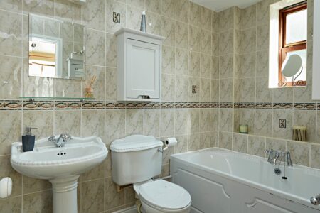 On the top floor, there are a further three bedrooms all with double beds and two having working space also. There is a large family bathroom, with large bath and separate shower.