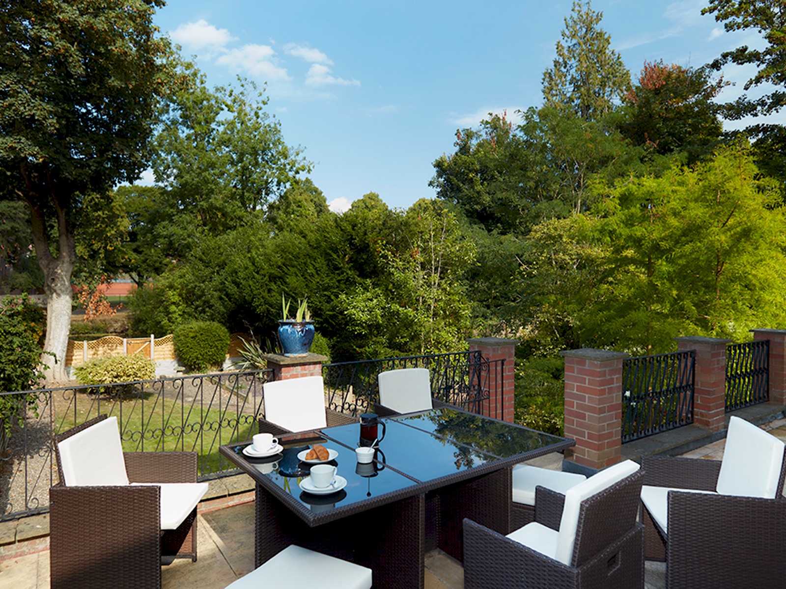 The outside terrace leads down to a garden, which leads out onto the river bank, where we have fishing rights.