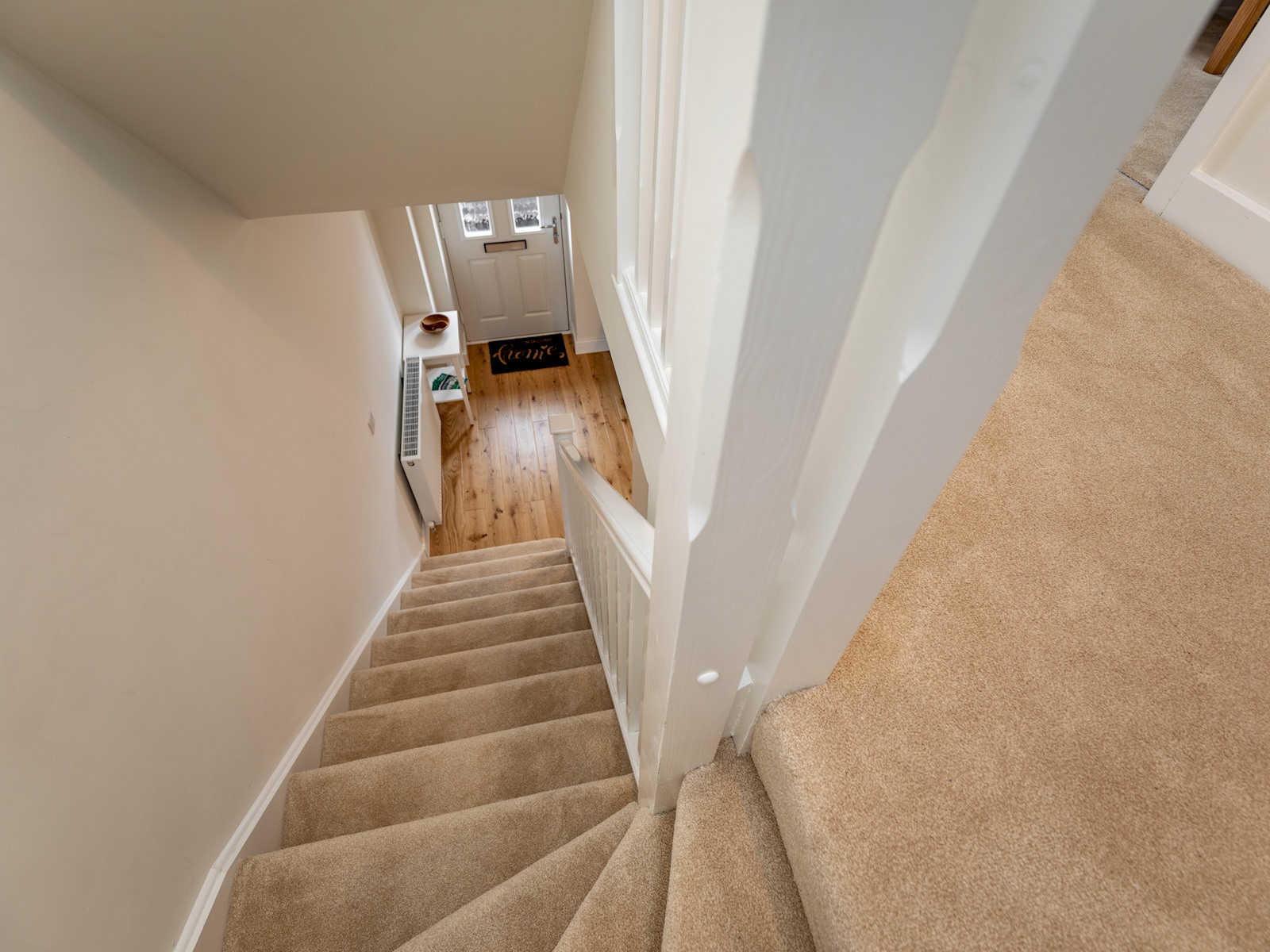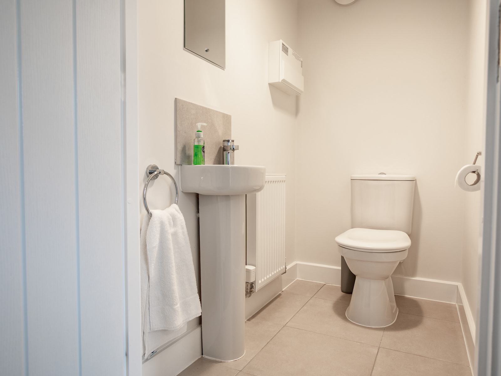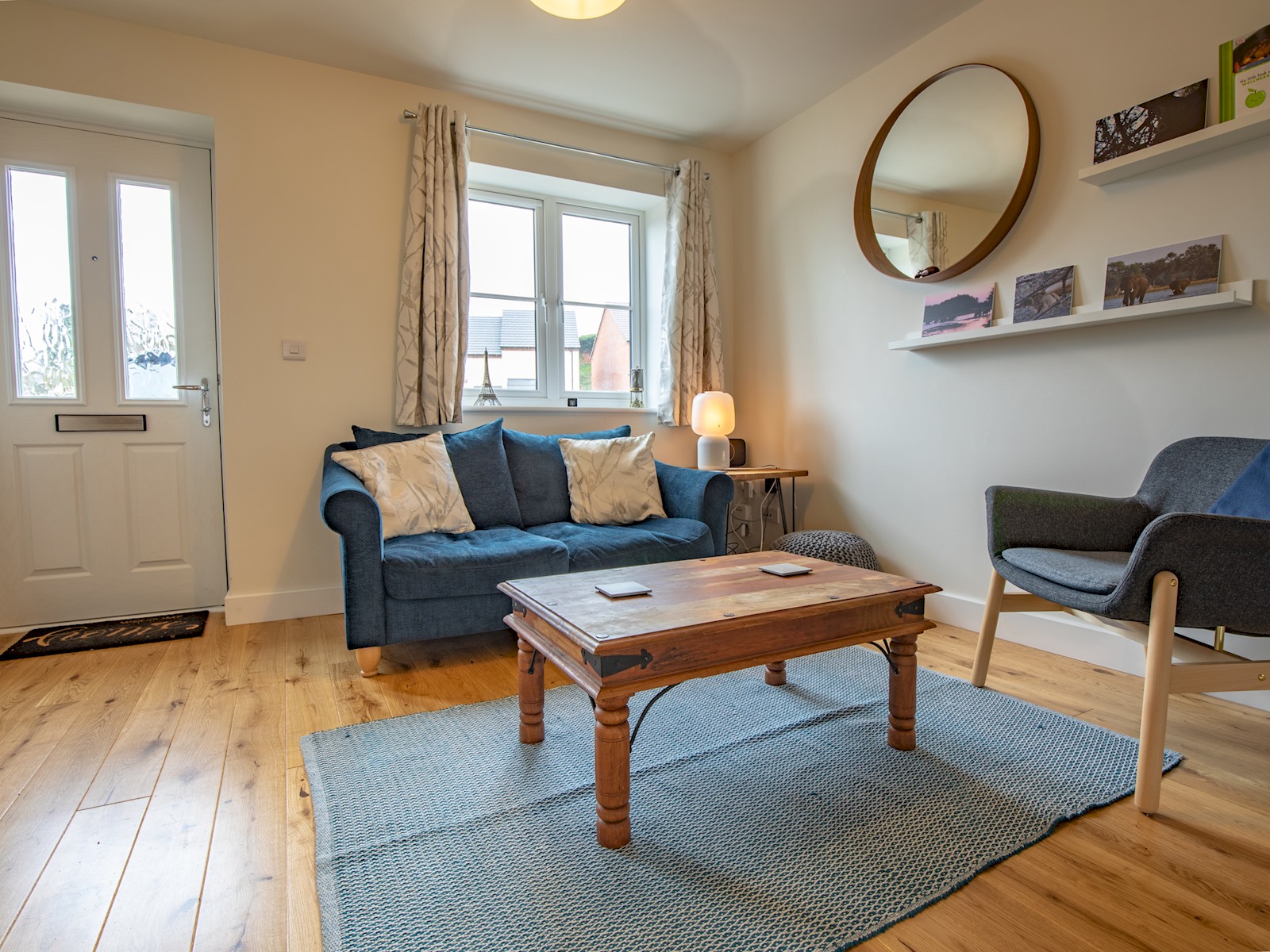Stairs from the lounge lead to two double bedrooms, one with a king-size bed and the second with a double. Both rooms have storage.