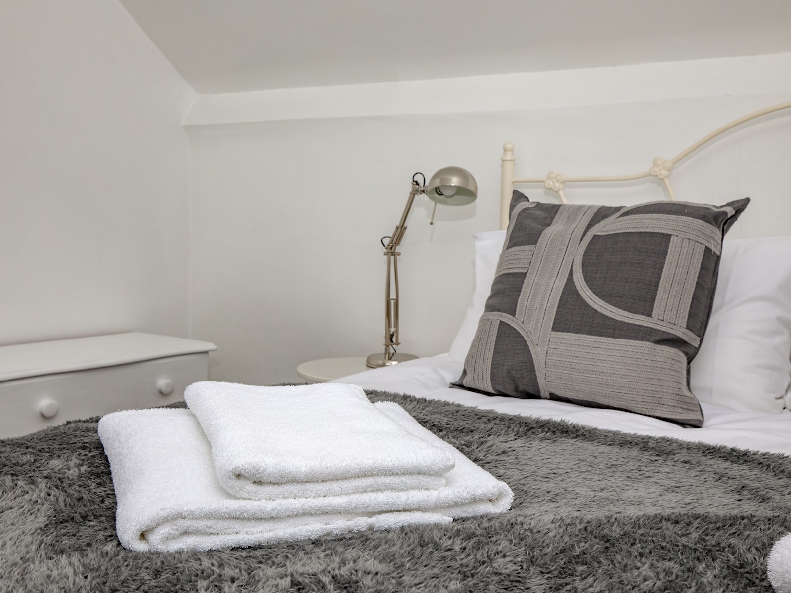 The main hub of the property is the large, airy, kitchen dining area which leads out onto the patio area, which is enclosed for your furry friends. We have a cosy, compact living area with gas fire and TV. The stairs to both the second and third floors are steep and narrow. On the second floor is a double bedroom with ample wardrobe space and a single bedroom. Stairs then lead to the third story, which is a double bedroom again, with wardrobe space and views out over the rooftops.