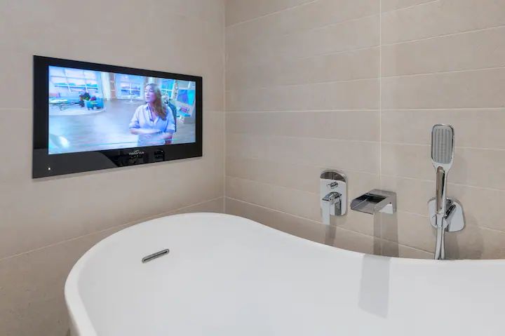 There is also a family bathroom, with a stand-alone bath where you can sit, relax and even watch a little TV from your bath. This room also has a walk-in rainfall shower.