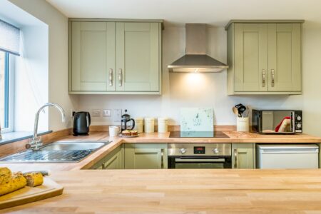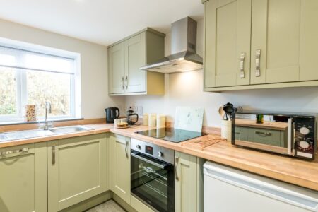 This delightful, single storey conversion lies in the quaint and picturesque hamlet of Albrightlee near Shrewsbury. Perfect for couples, this charming retreat is a lovely place to call home while exploring the surrounding area, including Shrewsbury, one of England’s finest medieval market towns. Step into the open-plan living space, appointed with a snug sofa where you can curl up after a day of exploring, in front of an alluring electric fire and Smart TV.