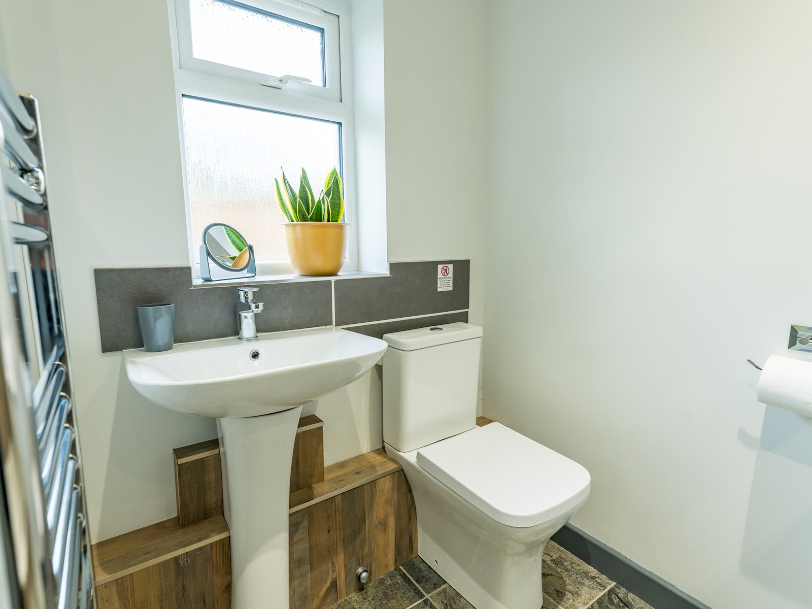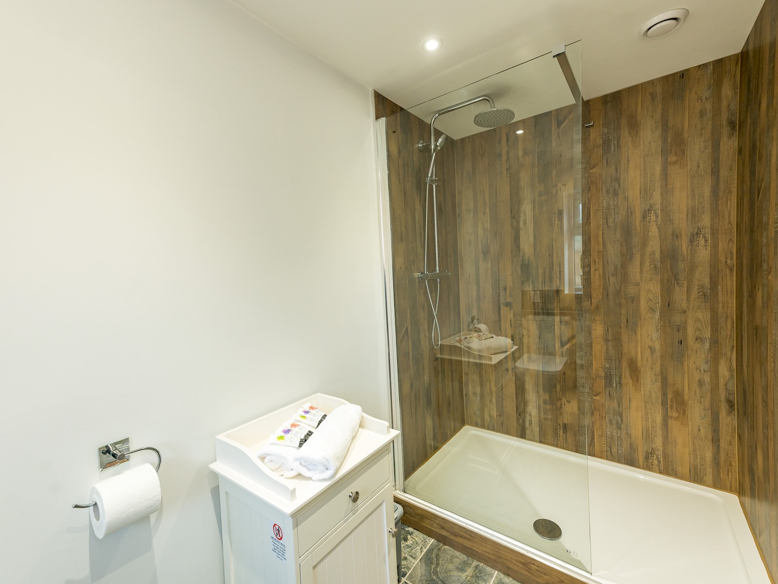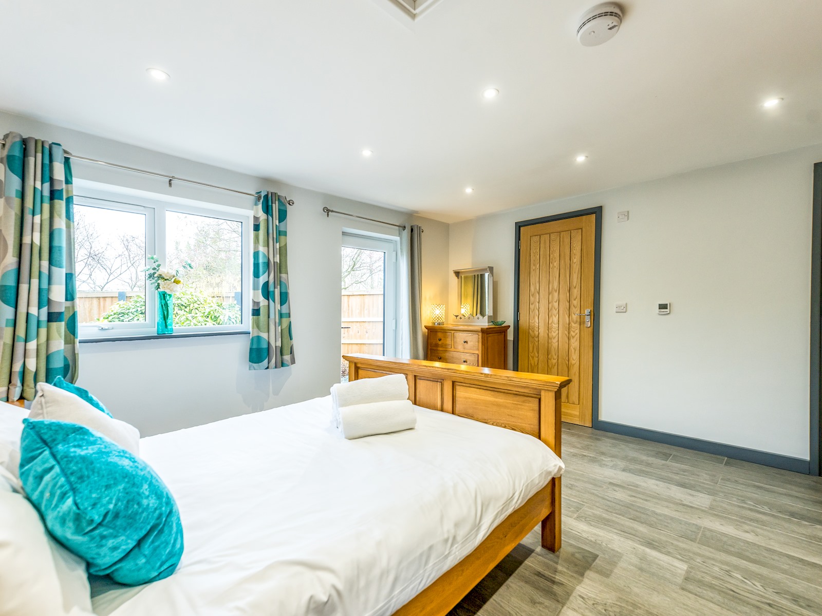 One king-size bedroom with en-suite shower, basin, heated towel rail and WC.