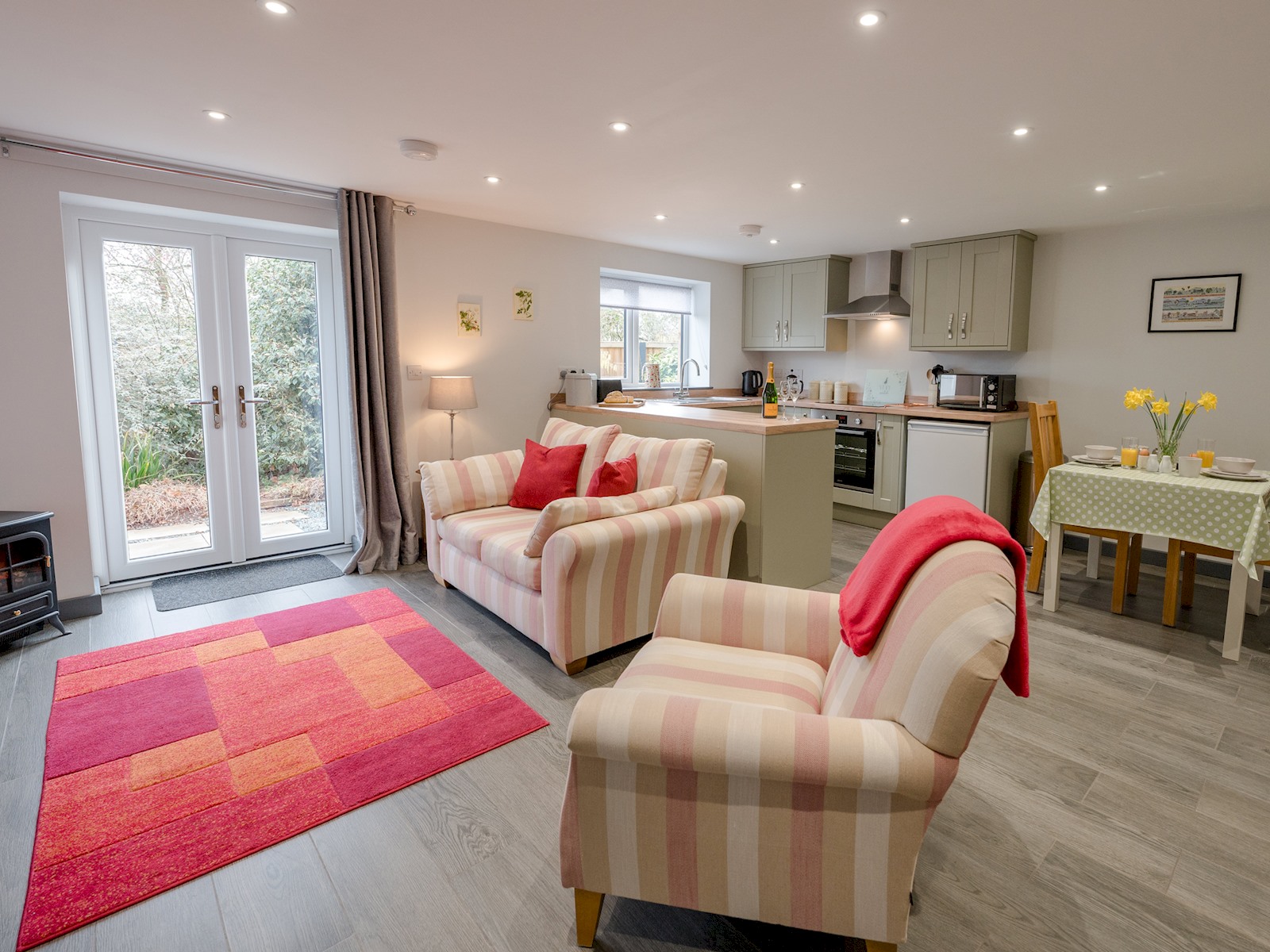 As you approach the Lodge from the road, down a tree-lined driveway, park your car to the left and enter the property to the open-plan sitting room / kitchen diner area.