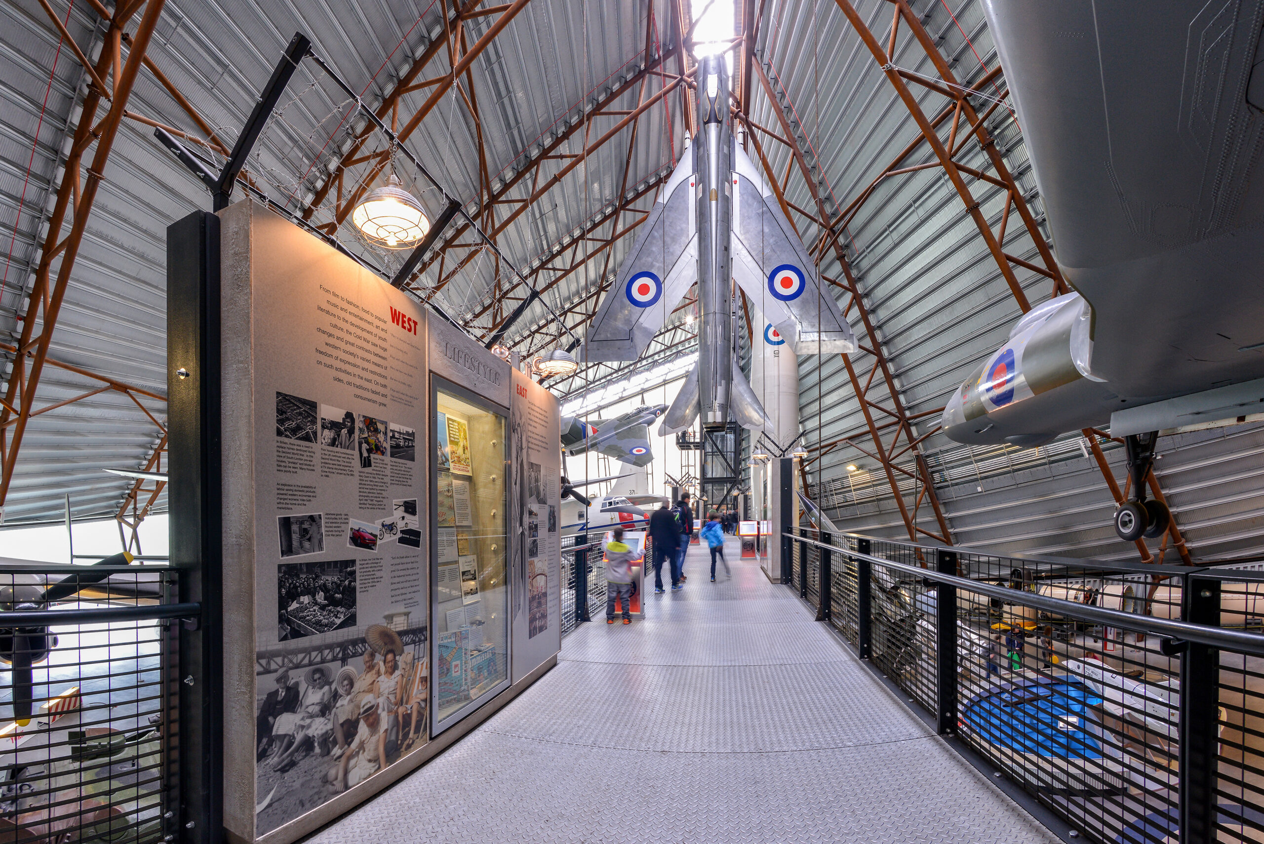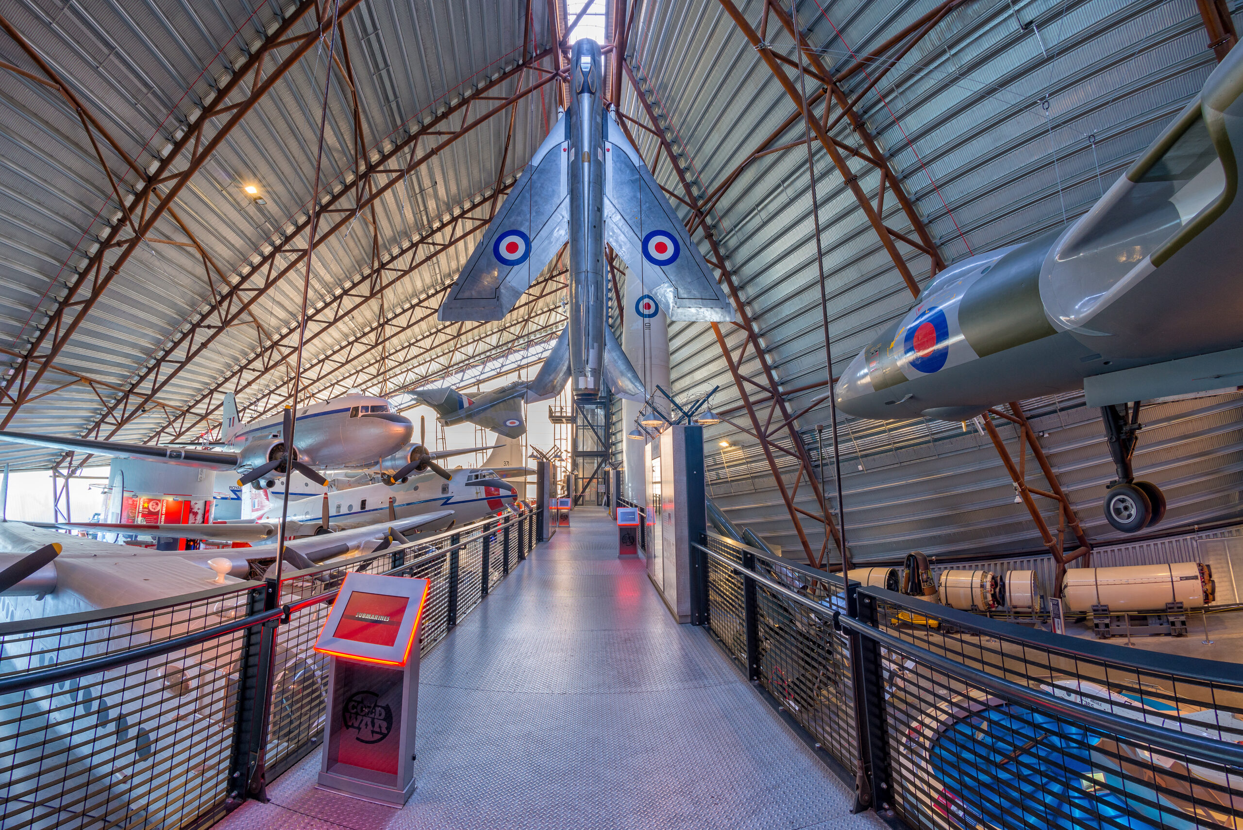 The National Cold War Exhibition truly has the ‘wow’ factor with its eye-catching architecture and design. Visitors will discover Cold War stories in immersive Hotspots; explore exciting displays of aircraft, iconic cars, models, tanks and even life-sized Russian dolls. Aircraft not to be missed include all three British V Bombers, Vulcan, Victor and Valiant and the English Electric Lightning suspended vertically!
