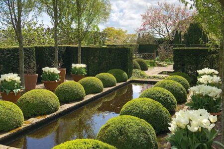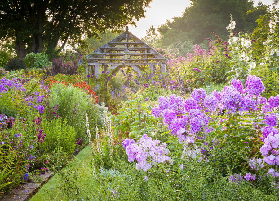 The garden is renowned for its salvias, clematis and roses, growing in controlled exuberance, and the clever use of colour, form and scale.