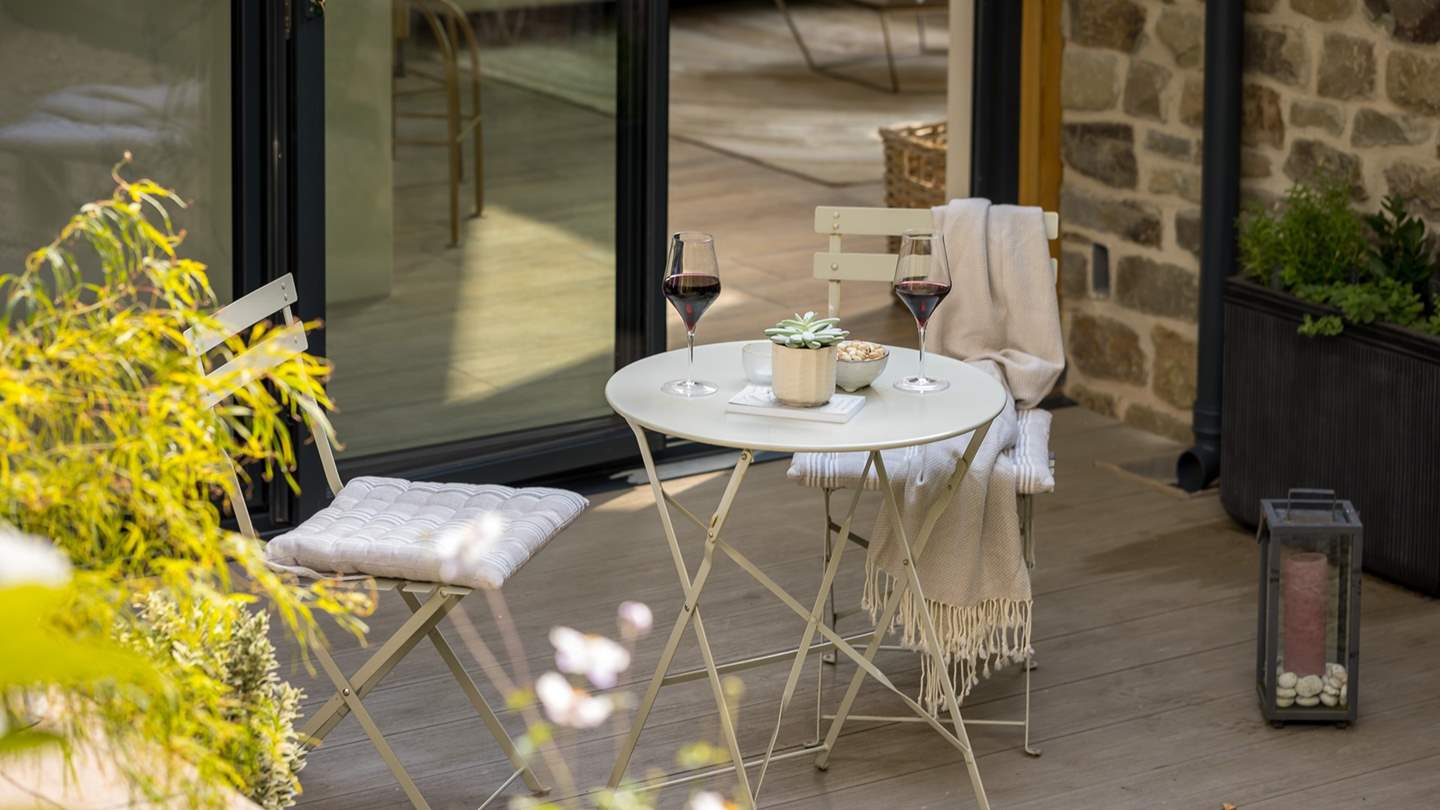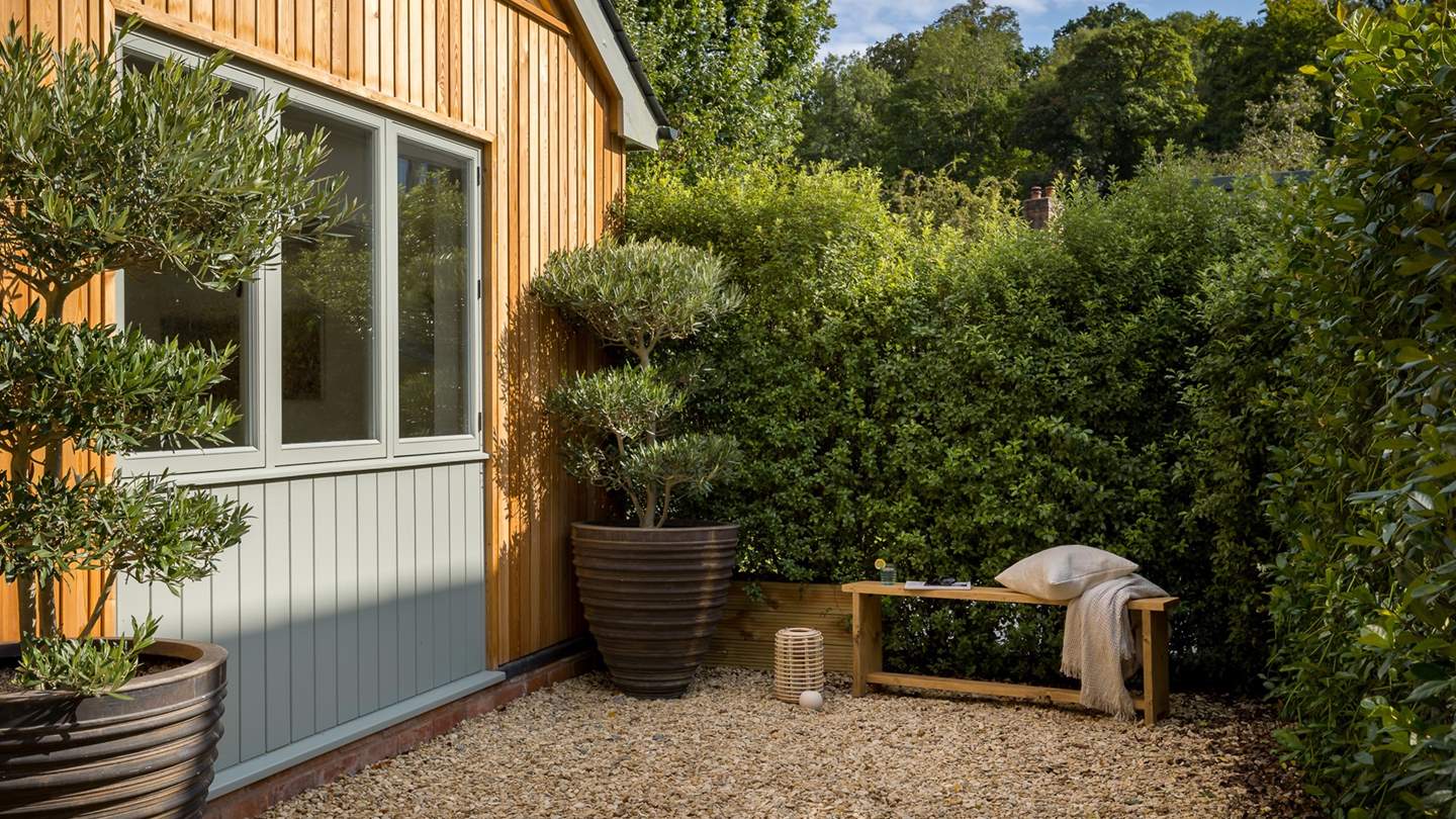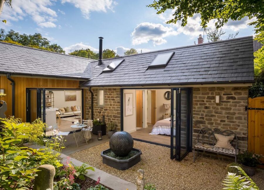 Elegant bifold doors open from the kitchen space, leading out onto the idyllic courtyard garden where a table and chairs rest. On warmer days, open the doors to welcome the outside in whilst creating culinary delights, later retiring to the patio for a glass of wine as dusky skies draw in.