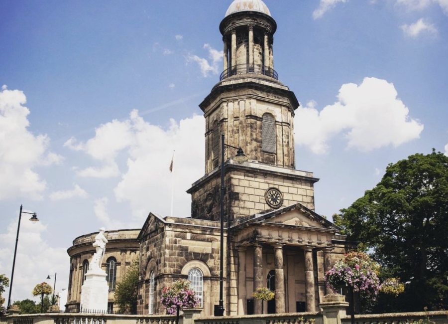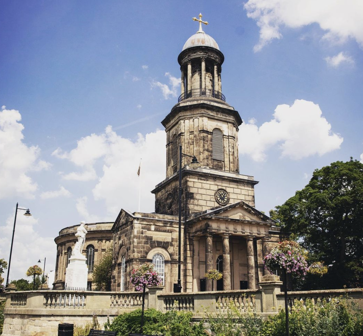 After much argument a new site was found on the derelict town wall, and the Scottish architect George Steuart, who had designed nearby Attingham Park and a church in Wellington, was commissioned. He submitted various designs, and although the Parochial Church Council preferred a rectangular one, ‘due to a misunderstanding’ he actually completed a circular plan that had been considered but rejected. Time was short, however, and it became the final design. Stones from old St Chad’s were used as foundations and the foundation stone was laid on St Chad’s Day, 2 March 1790.