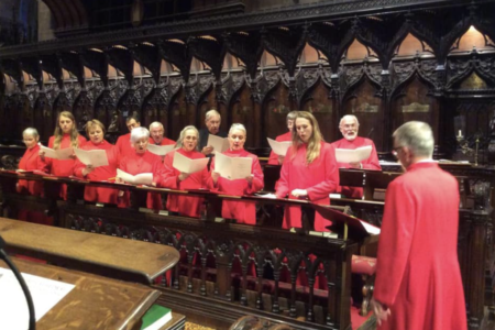 The circular nave is unique, with pews arranged like a maze. The original ‘three-decker’ pulpit has been replaced by one in Arts and Crafts style in copper and brass, placed under the rim of the gallery. This opens a clearer view of the Sanctuary, which, bordered by Corinthian pilasters and columns, contains a fine reredos and a colourful window, made by the renowned Shrewsbury firm of Betton and Evans.
